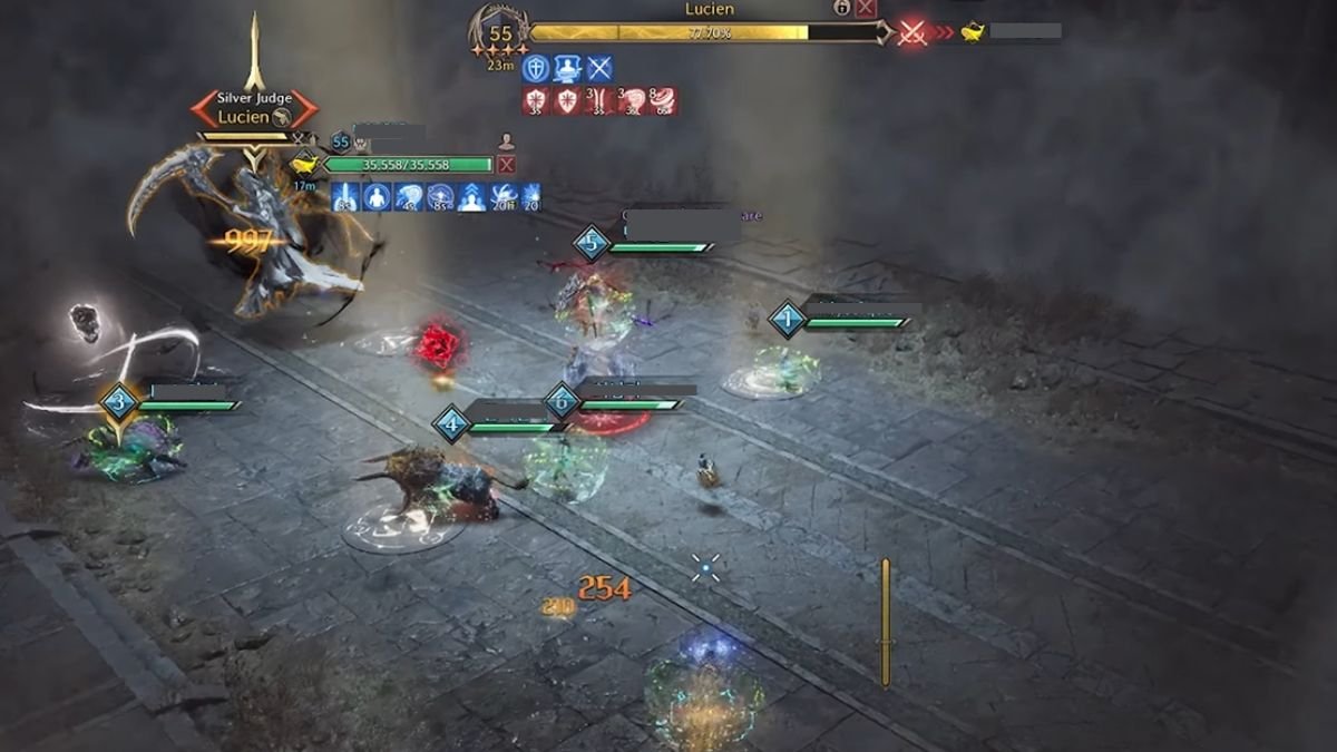 Lucien appears at the end of Abyss of Corruption, which is also known as the Epic Dungeon. The boss’s attacks are pretty telegraphed and repeatable, but teamwork is required to take her down. The dungeon itself is quite linear, and the only hurdles you face are some low level enemies blocking your path. But once you go past all that, you get to Lucien’s lair. Let’s take a look at their moveset and how to go past them.