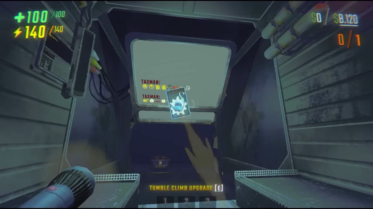 The Tumble Climb upgrade functions much like a grapple hook. After equipping it, your crosshair turns blue. To activate the upgrade, approach any surface while tumbling, aim at it, and press the action/interact key to launch an invisible thread. This pulls you upward, making you unreachable by monsters. Use this ability to reach inaccessible areas and improve your chances of escaping.