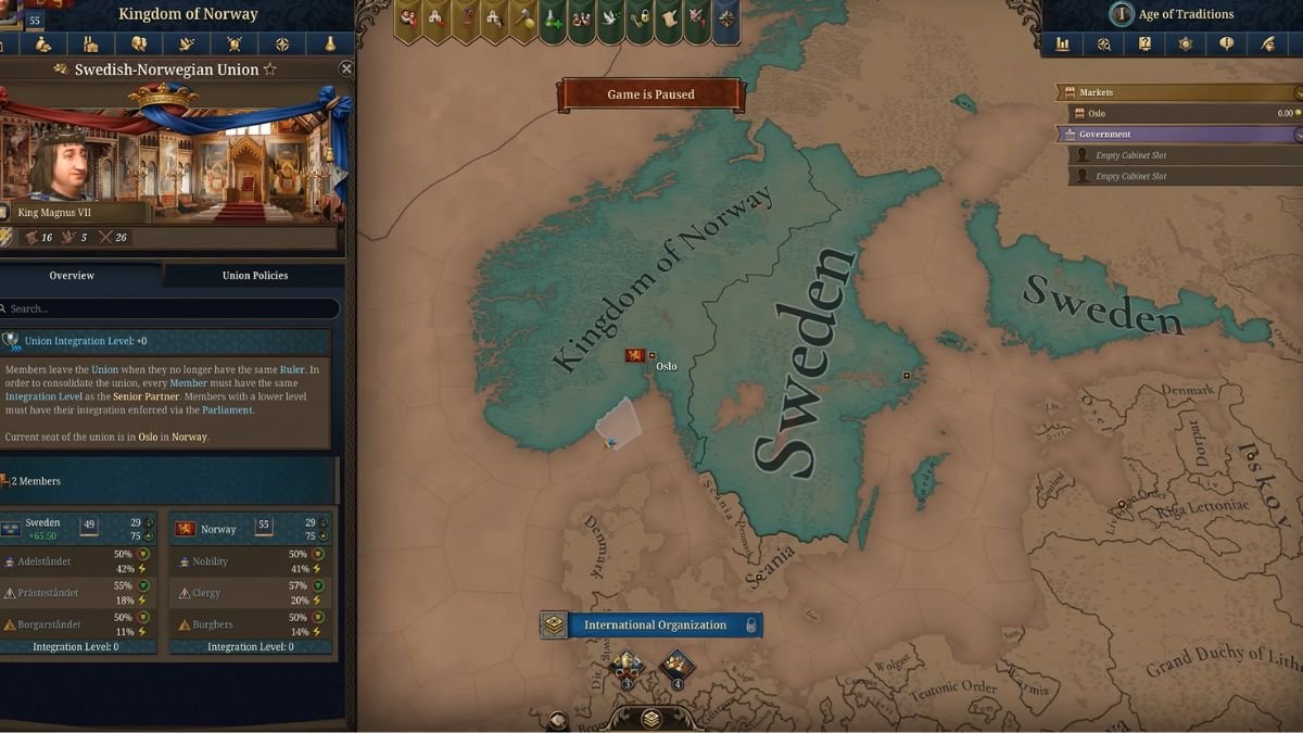 Nonetheless, Norway is easy to maintain economically, since you get Silver and Wheat. Focus on improving your main capital and working on your Navy. Like England, improving your Navy from the start is crucial, since your nation borders the sea. Also, like England, Norway also falls under the Crown, so working on Crown Power to influence neighboring nations is required. Focus on centralization to increase Norway’s national value, which, in turn, will increase neighboring control and improve taxes.