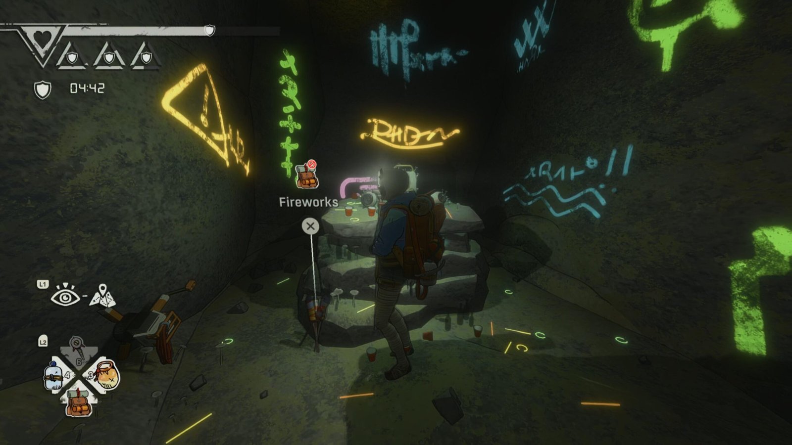 After this, you’ll have entered the rave cave, and you’ll then want to head to the source of the music. Sitting alongside this boombox, you’ll find the fireworks lying on the floor.