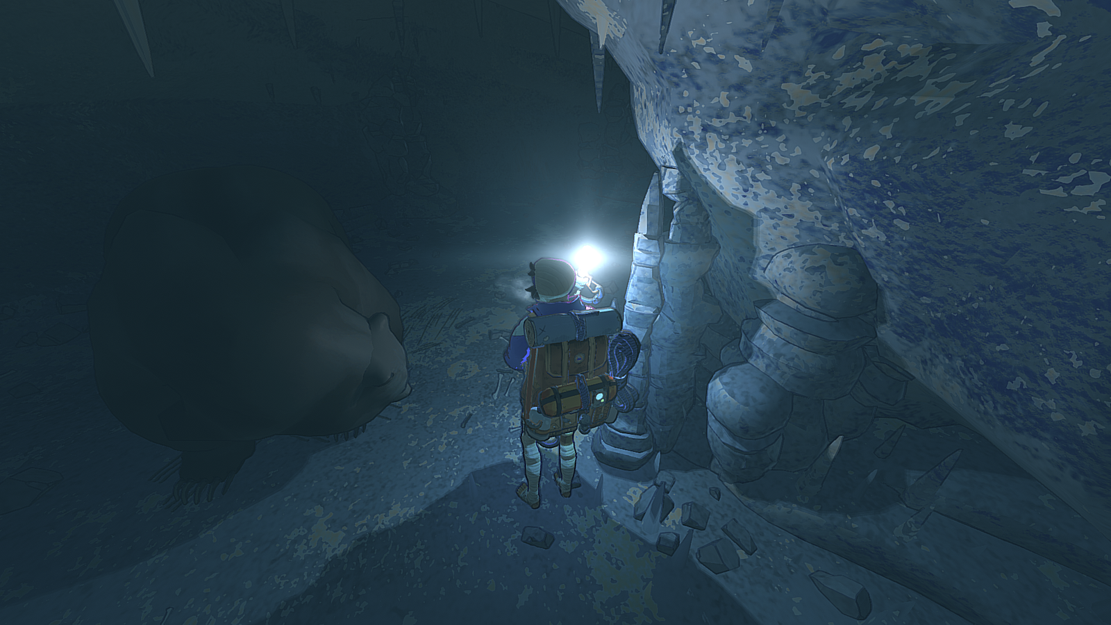 The bear will follow you all the way back to the cave entrance and stick his head out, preventing you from coming back in. That’s about as intense as things get, however. In fact, you can even stop for a fun photo shoot with the critter if you so desire.