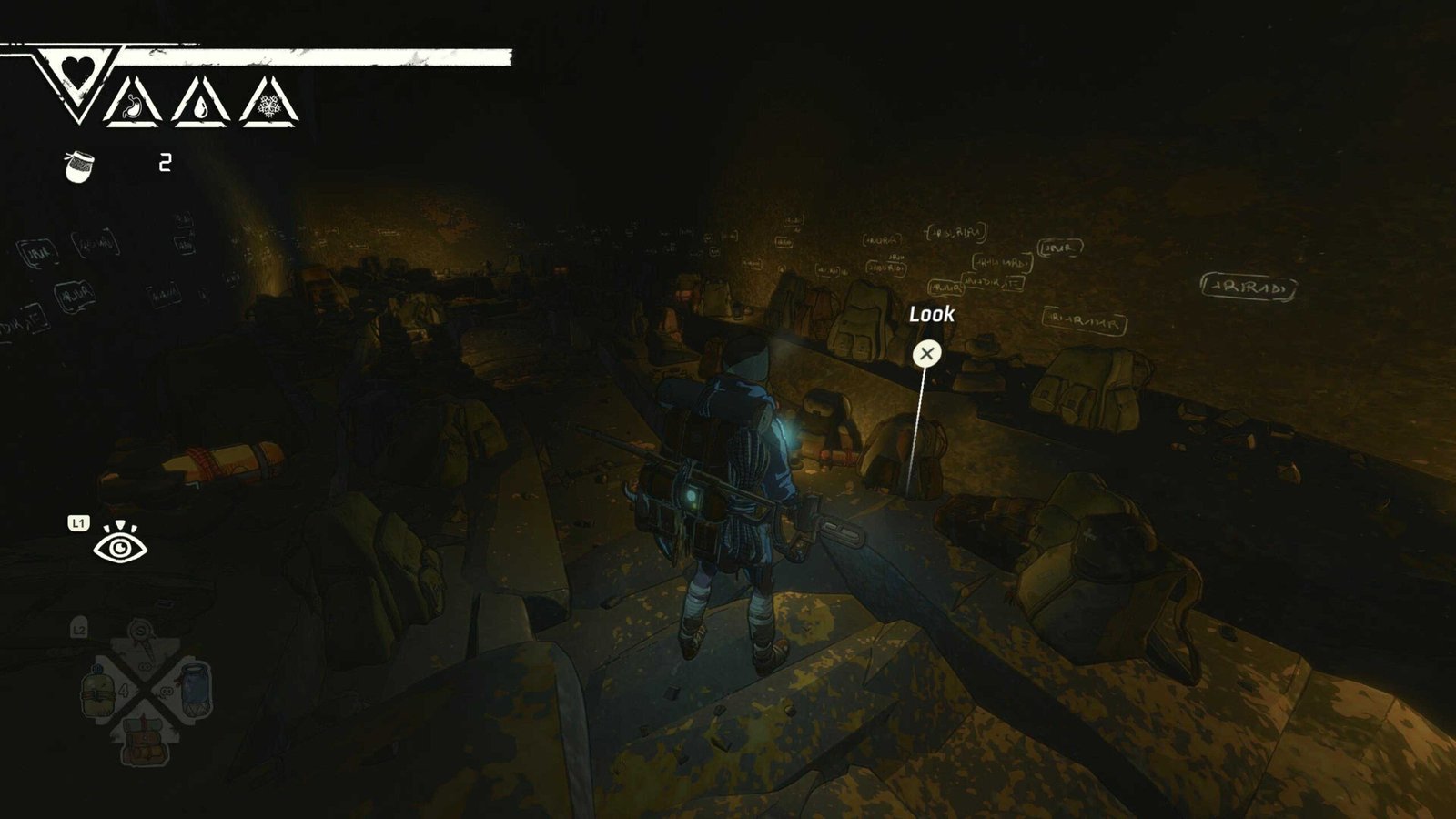 You’ll be shown a lot of harrowing things during the cutscenes in this area, but by far, the most affecting is the backpack graveyard. When you wake up, you’ll want to head there.