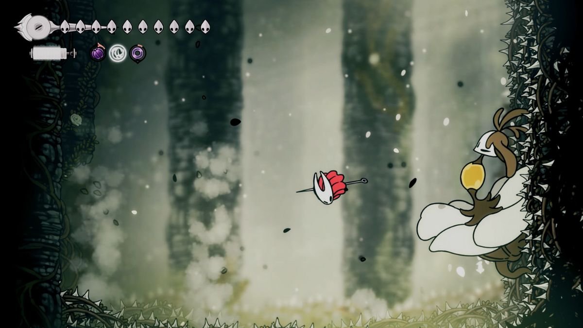 You could use the small space available to your advantage, as this also limits the boss within your peripheral vision. A couple of ranged attacks will stun it frequently, which will quickly bring the boss down and give you the Pollen Heart reward in Hollow Knight: Silksong.