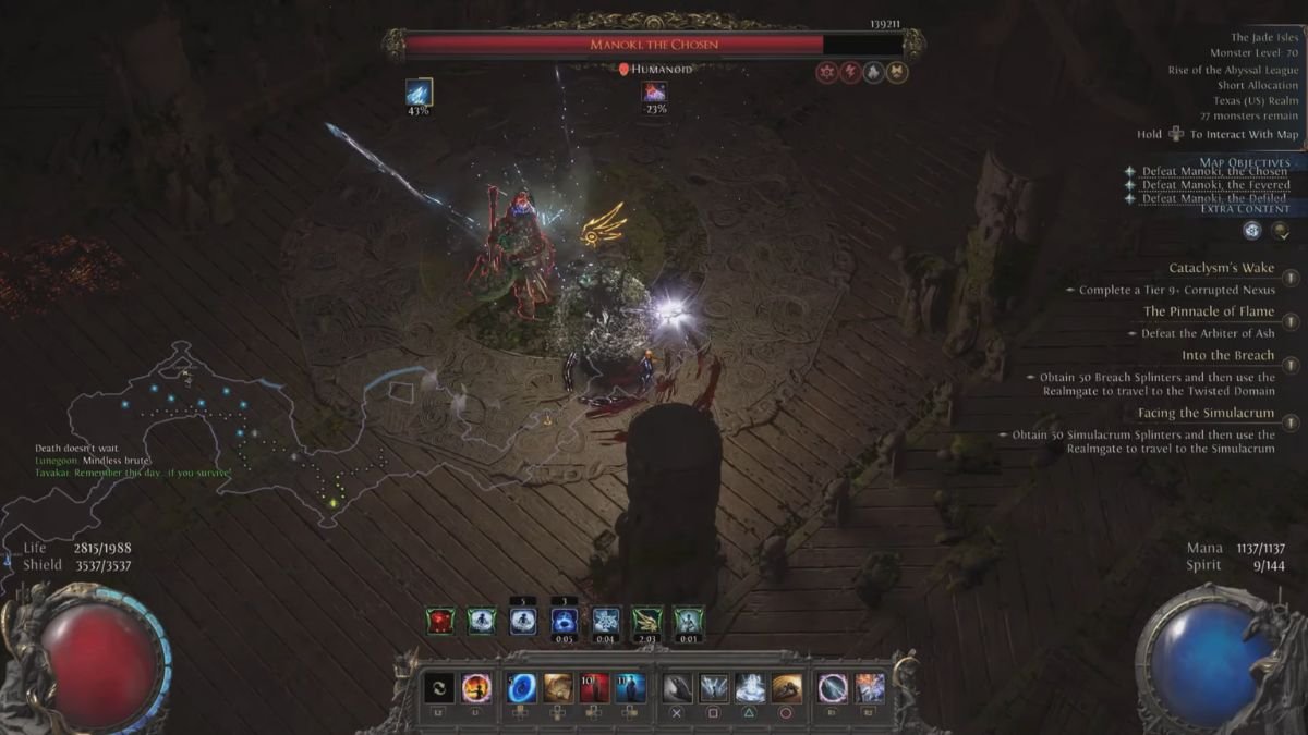 The Rakiata’s Flow commonly drops from the Manoki, the Chosen at The Jade Isles, but other Deadly Bosses from the Act 4 Atlas maps also have a chance to drop this gem. The Jade Isles are found within the Eye of the Storm prior to the game’s completion, and heading into this map lets you access the Jade Isles by pressing Tab. After completion, the map will be renamed permanently to The Jade Isles.
