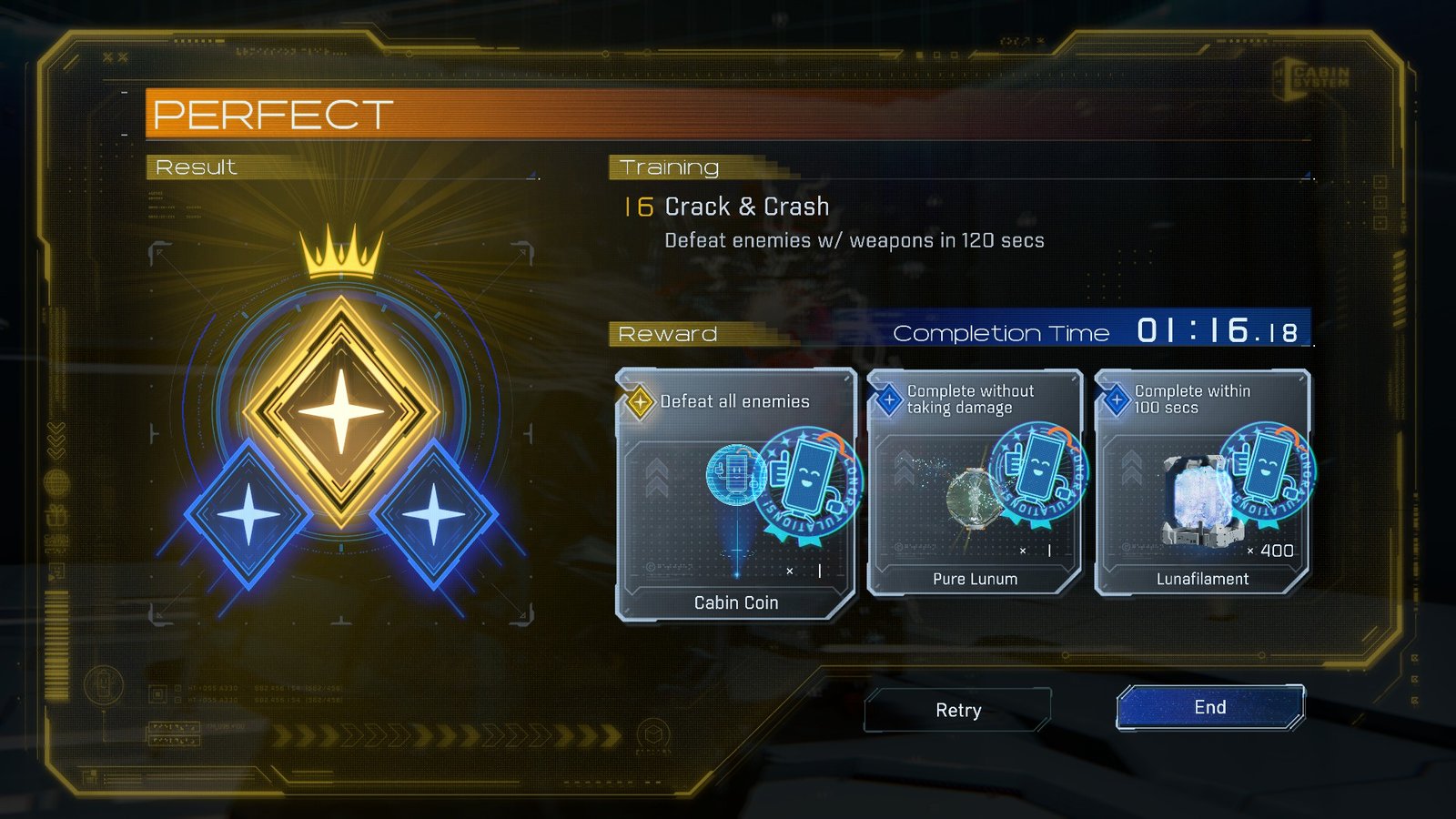 - Complete without taking damage