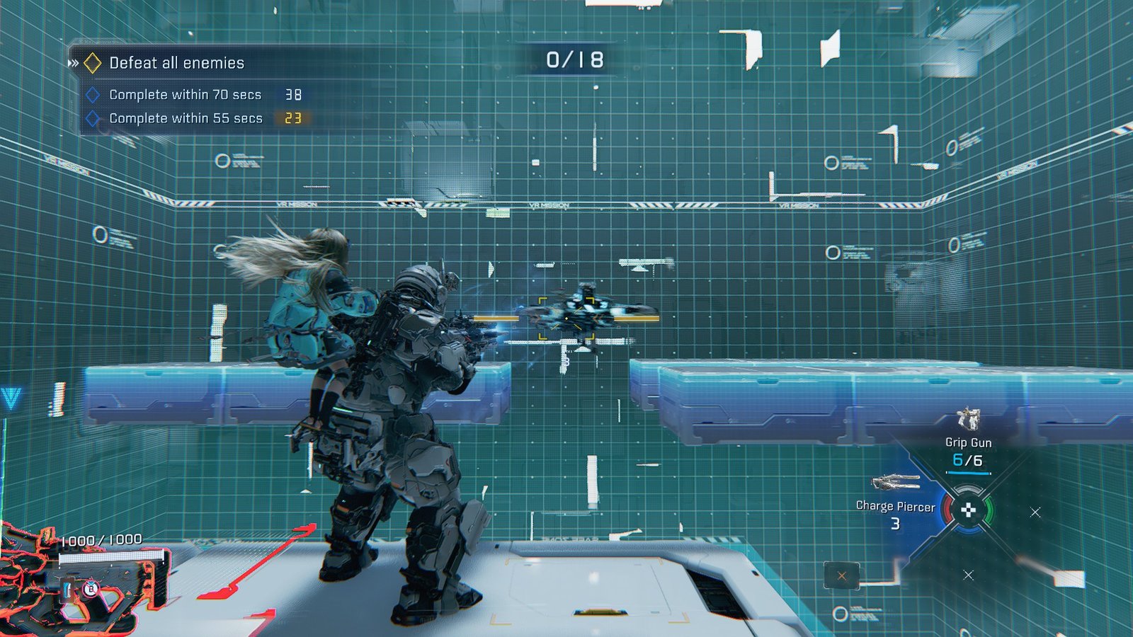 Project Pierce is all about using the Charge Piercer to pop groups of bots at once. They’ll appear in lines that you’ll have to move and position yourself for in order to meet the time requirements.