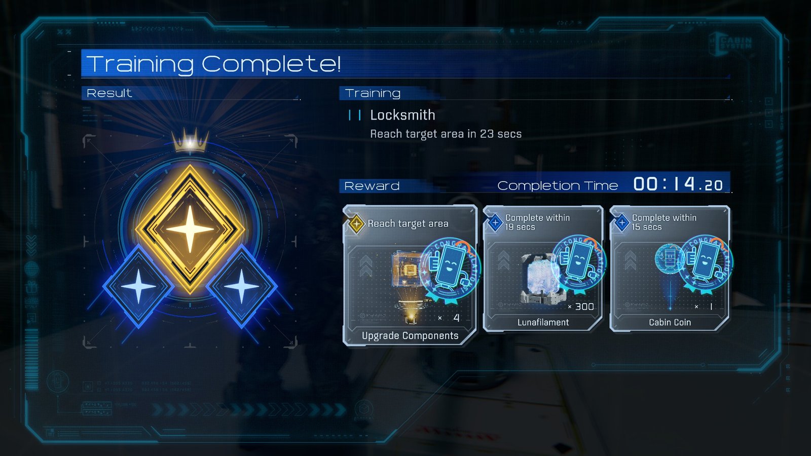 The speed time is very easy to hit, as expected from the very first training sim. Just take your time, don’t panic as platforms shift, and you’ll be in the clear.