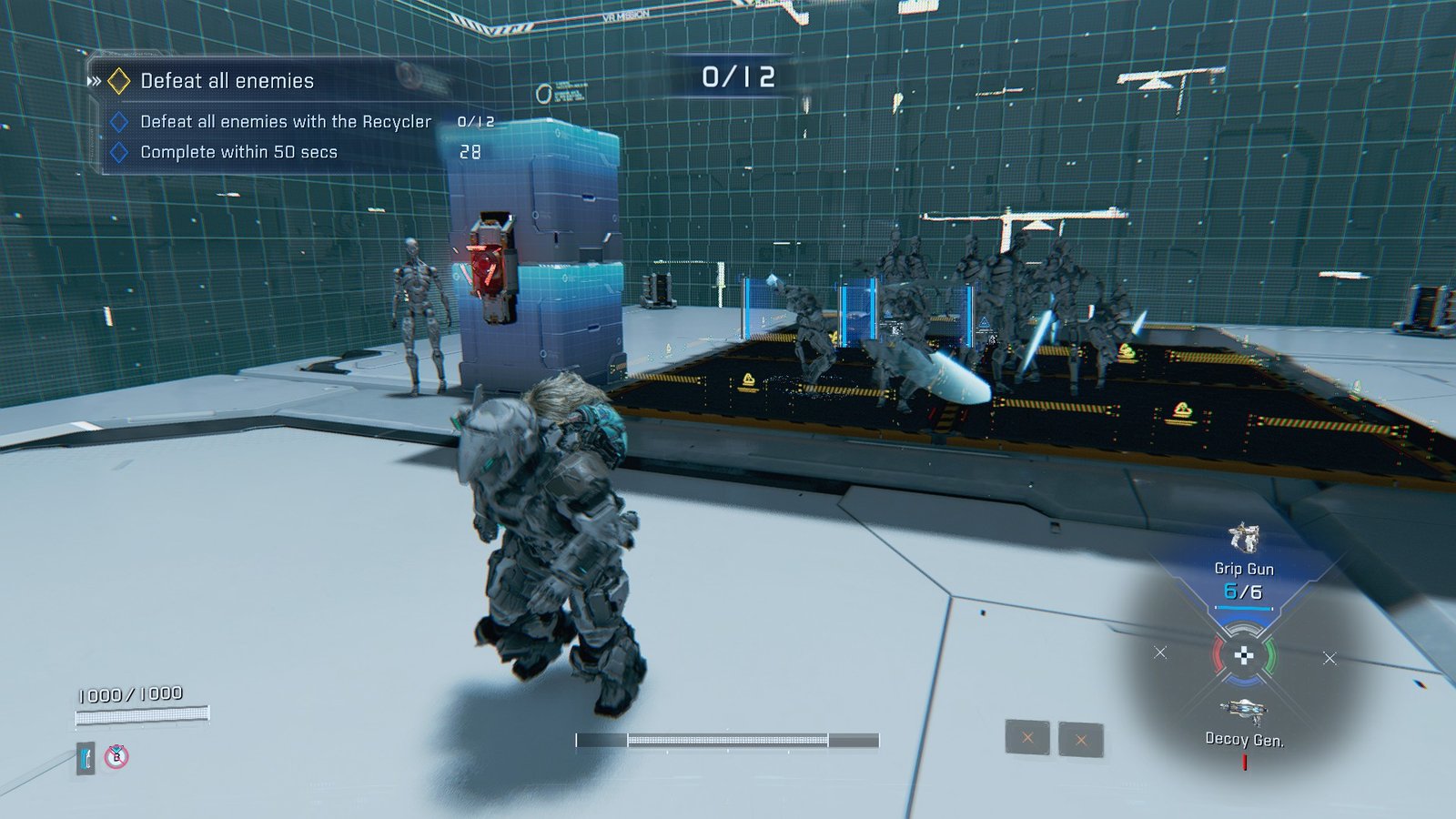 - Defeat all enemies with the Recycler