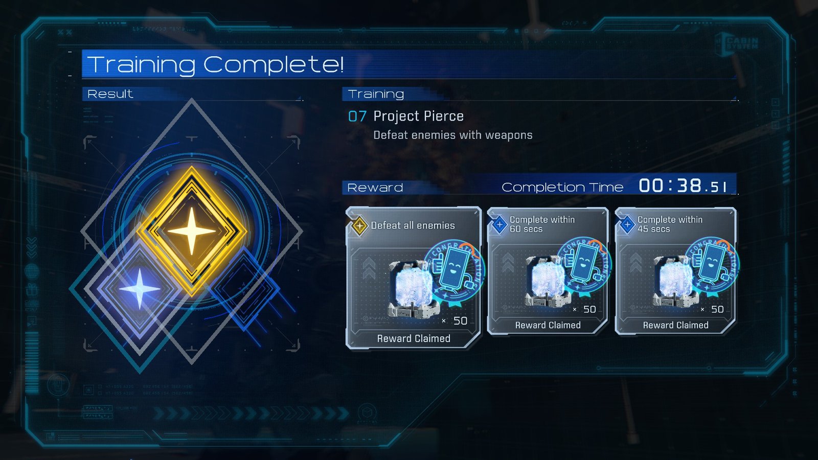 Just as it sounds, Expert Project Pierce is a harder variant of the earlier Project Pierce Training Sim. You’re placed on a moving platform as rows of Drones spawn. You’ve got 55 seconds to pop each, so try to line up each shot before they come.