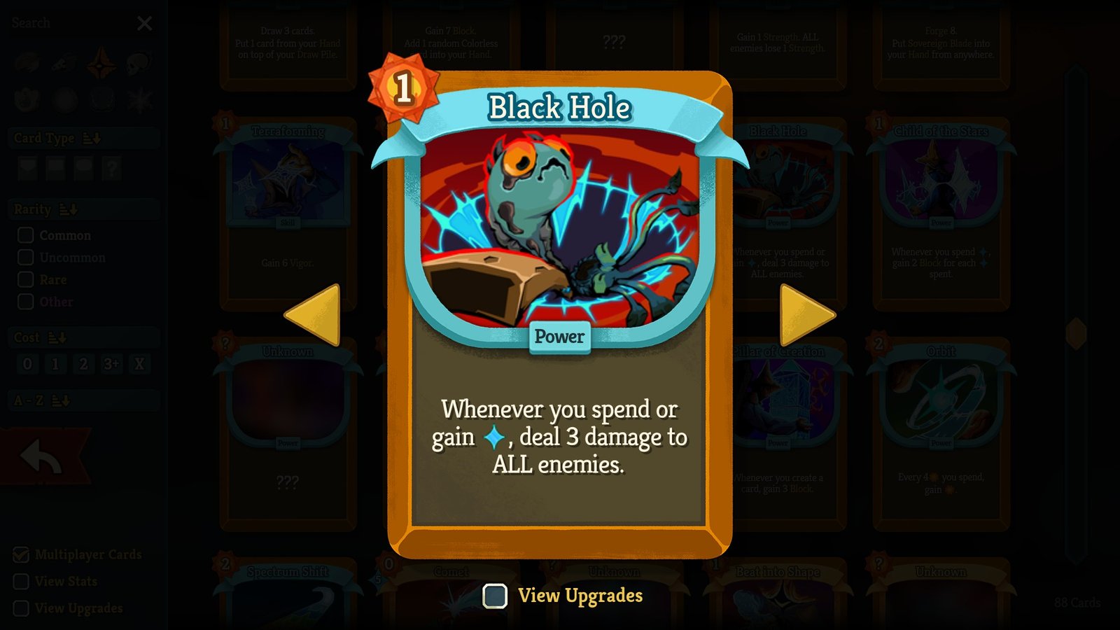 For a single Energy, Black Hole’s constant uptime is a blessing. Even if three damage isn’t a lot, you’ll be constantly gaining and spending Stars to proc it, really letting you pour on the damage even on turns you need to play defensively.