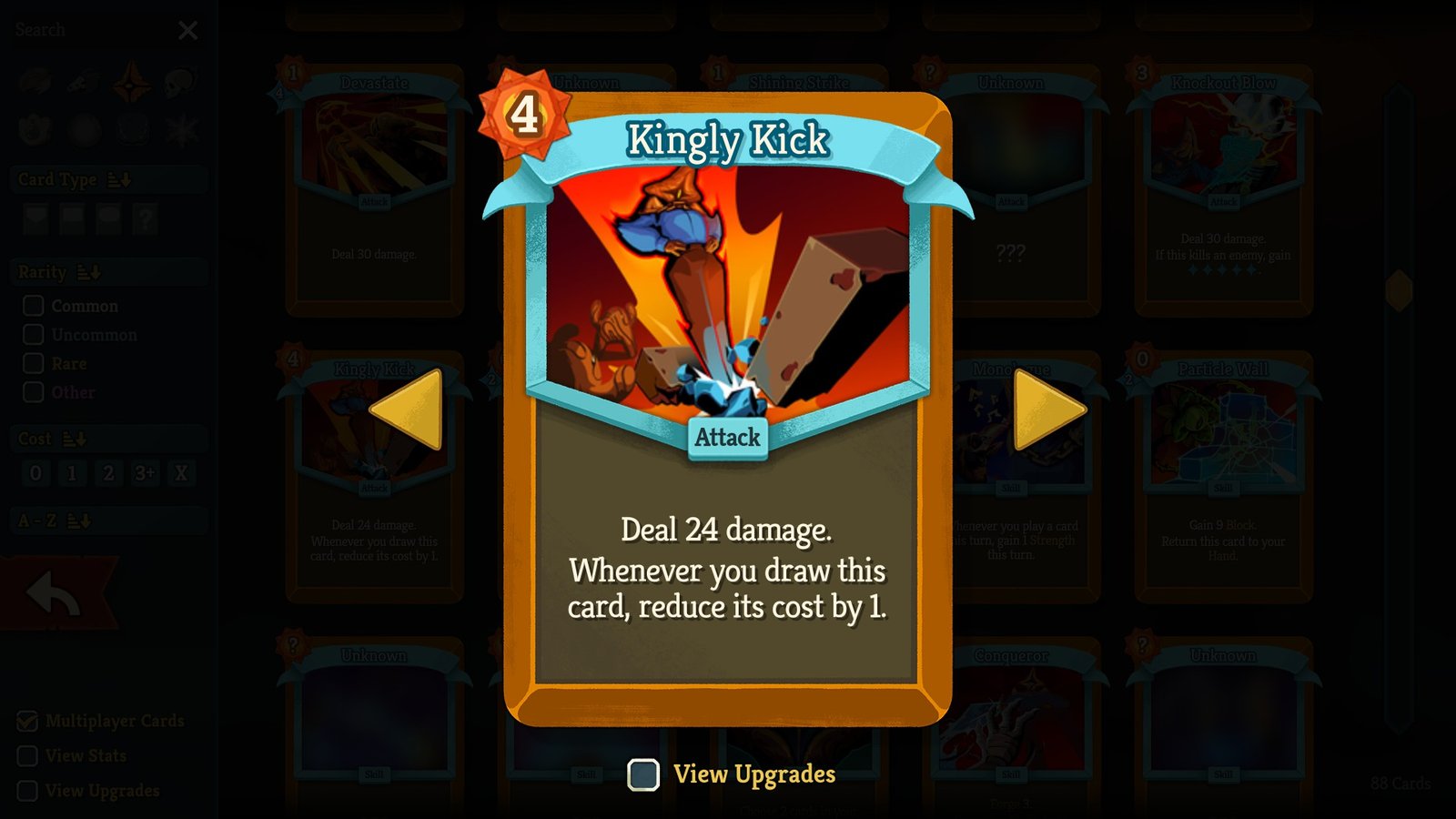 Luckily, the Regent’s ability to move cards back to the draw pile means Kingly Kick can quickly become a very cheap way to do solid damage. In longer fights, you might even be swinging for free.