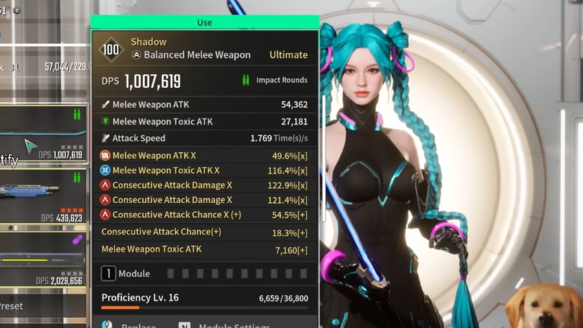 Faster Attack Speed will increase the slash speed, while Exquisite Sword increases melee damage and also increases Consecutive Attack Chance. Poison Priority is an elemental modifier, and using Increased Range alongside this module will help with the loss of range from Poison Priority. Expand Impact Magazine will increase magazine capacity for the Shadow Sword, which is a requirement since the sword requires ammunition.