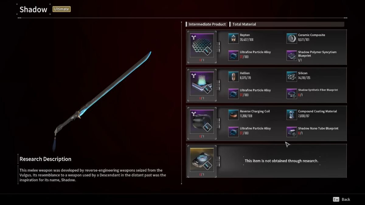 Enhancing the unique ability of the Shadow Sword will not change any of its stats, but will decrease the cooldown time of the special attack. Now, let’s take a look at the best Modules, Cores, and Weapon Readjustments for the Shadow Sword.