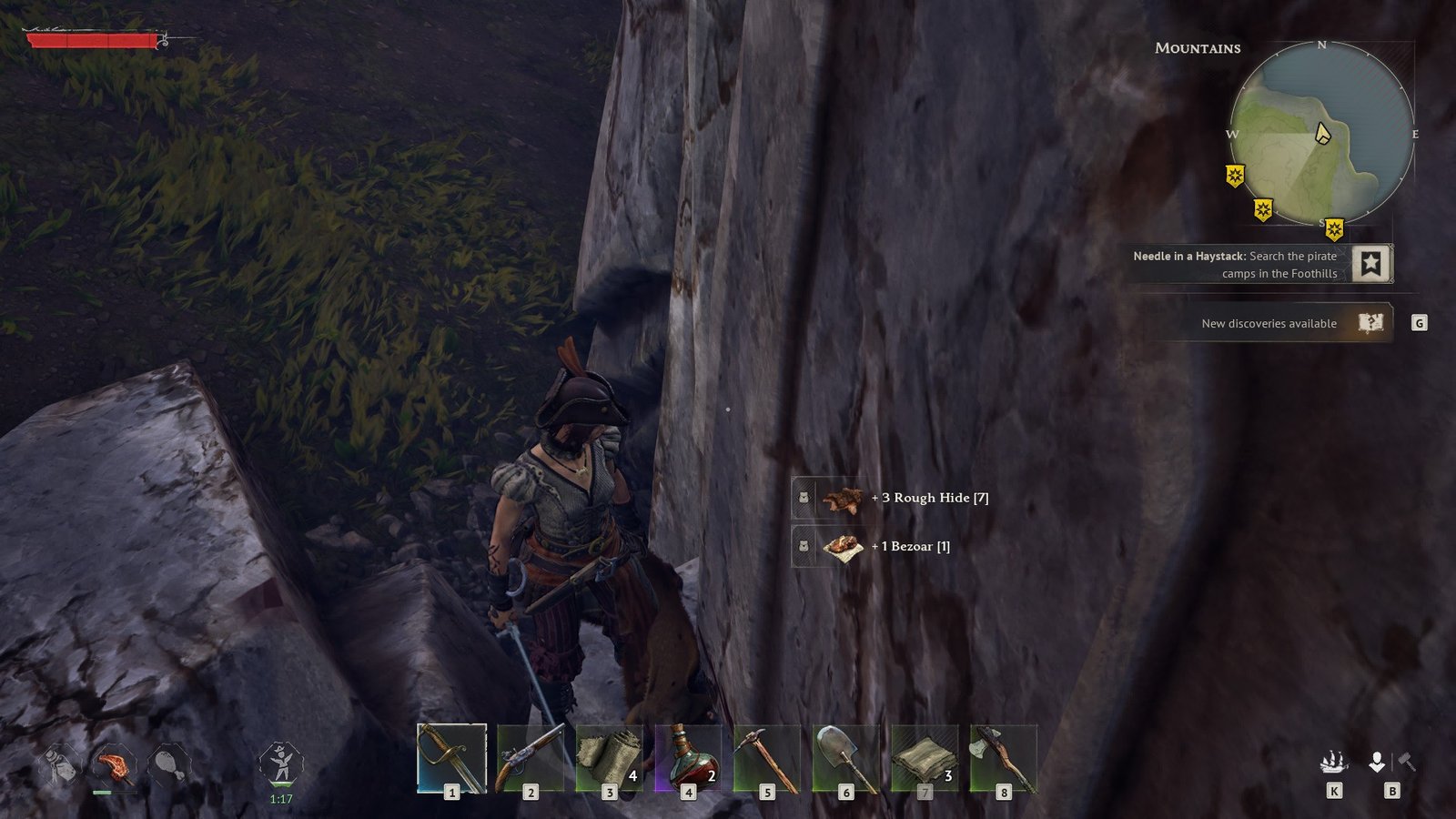 With the map markers, you can set sail for the Foothills. Once you arrive, head into the mountains and look for goats, which drop Bezoar.